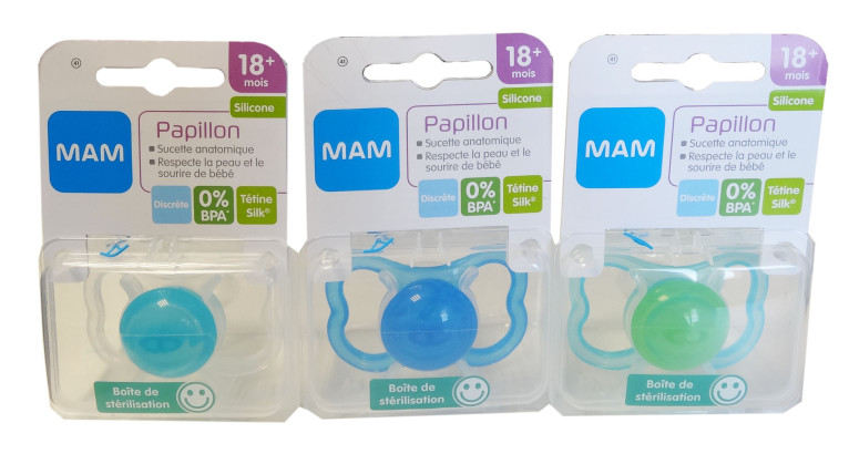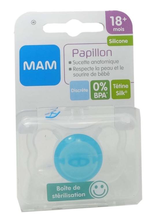 MAM développe depuis 35 ans des produits de puériculture uniques, tant par leur design que par leur fonctionnalité, afin de favoriser le développement des jeunes enfants et répondre aux exigences de leur parents. Chaque produit est conçu en partenariat avec des professionnels du monde médical, pédiatrique et scientifique : médecins, sages-femmes, psychologues du développement, designers et experts en technologie, afin que tous les bébés démarrent la vie du bon pied. Les sucettes MAM accompagnent les bébés en satisfaisant leur réflexe de succion et en leur procurant un sentiment d’apaisement. Les sucettes MAM sont conçues pour garantir un maximum de confort aux bébés pendant les différentes phases de leur développement. Leur design anatomique assure une parfaite prise en bouche, le respect du développement de la mâchoire et de la bonne disposition dentaire. Les tétines en silicone souple sont extra-douces et offre une bonne stabilité en bouche. La sucette collerette épurée 18 mois et + de MAM, au design léger, aérien et discret, préserve la peau fragile des bébés et n’entrave pas la respiration. La sucette est munie d’un boitier de stérilisation qui facile son transport et son entretien.