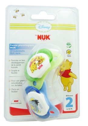NUK SUCETTE PHYSIOLOGIQUE WINNIE LOT DE 2 6-18 MOIS