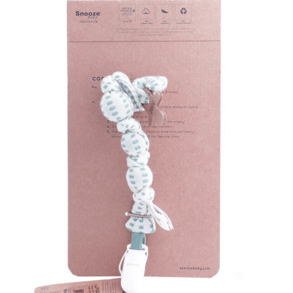 Les attache-tétine SNOOZE BABY se pincent directement sur les vêtements de bébé, doudou, lange… pour résoudre définitivement les problèmes de sucettes qui tombent ou qui se perdent. L’attache très pratique s’adapte aux sucettes avec anneau. Son cordon 100% coton certifié Oeko Tex tout doux est solide et sûr. Pratique l’attache sucette se lave en machine à 30°C.