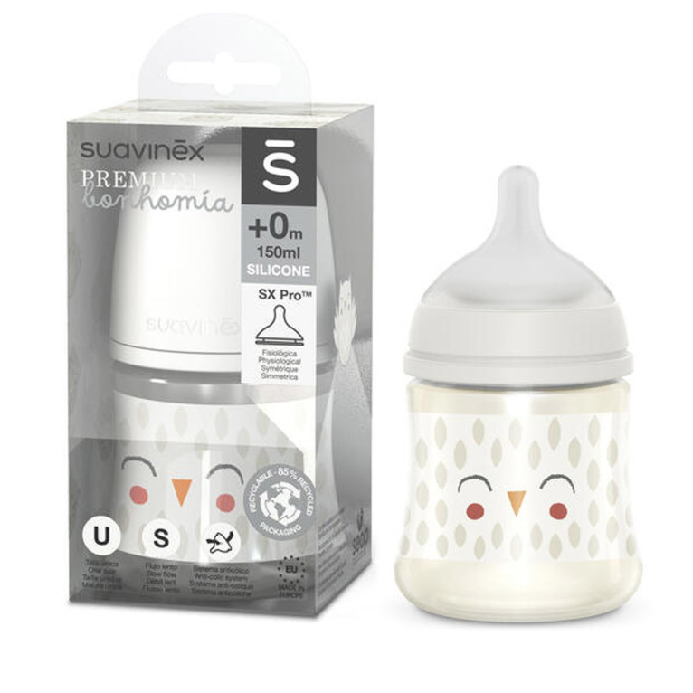 Offrez à votre enfant le meilleur avec le biberon Suavinex +0M 150 ml Bonhomia blanc plume, disponible sur notre site à prix discount.