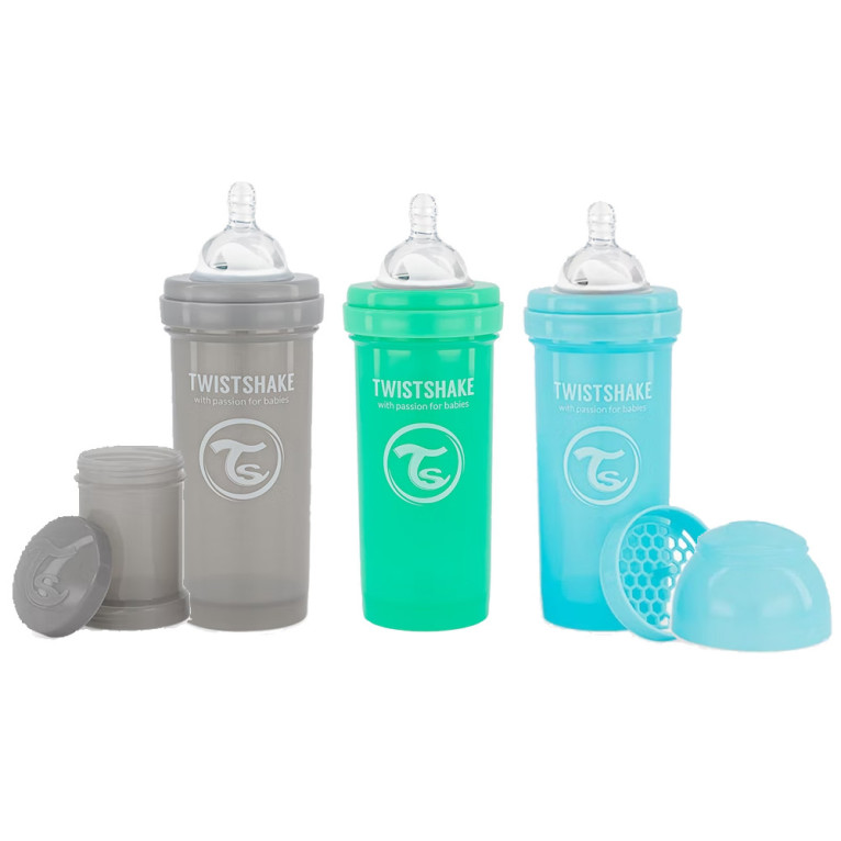 TWISTSHAKE COFFRET 3 BIBERONS ANTI COLIQUE 260ML GRIS VERT BLEU