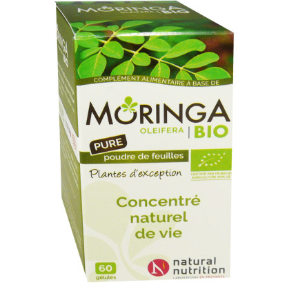 MORINGA Oleifera BIO Pure Poudre de Feuilles Concentré naturel de vie du laboratoire NATURAL NUTRITION, est un complément alimentaire à base de plantes, sous forme de gélules, dans votre parapharmacie en ligne à prix discount.