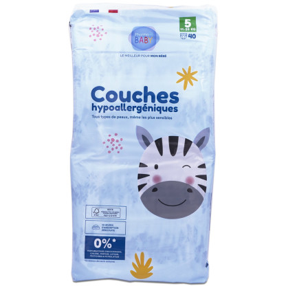 COUCHES HYPOALLERGENIQUES PHARMABABY TAILLE 5 40 COUCHES