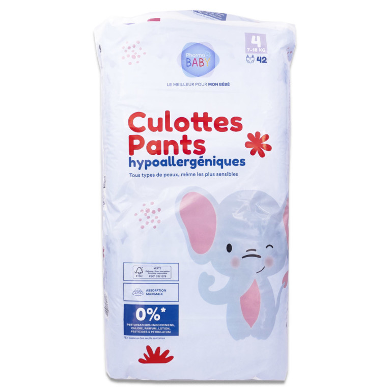CULOTTES PANTS HYPOALLERGENIQUES TAILLE 4 42 CULOTTES PHARMABABY est en vente en ligne sur le site de votre parapharmacie à prix discount, offrant une solution idéale pour les bébés à la peau sensible nécessitant un confort optimal au quotidien.