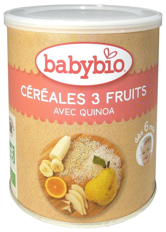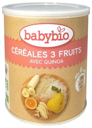 Céréales 3 fruits avec quinoa de BABYBIO, des céréales pour le goûter ou le petit déjeuner à donner aux tout-petits à partir de 6 mois pour commencer à diversifier leur alimentation tout en douceur et régaler les papilles !