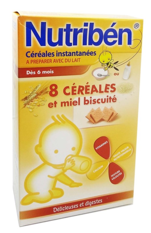 Née à Barcelone en 1963, la marque NUTRIBEN développe des produits spécialement conçus pour couvrir l’ensemble des besoins alimentaires du nourrisson : petits pots, farines et laits infantiles. Désormais implanté en France depuis 2006, NUTRIBEN œuvre au quotidien pour offrir des produits alimentaires sûrs, efficaces et rigoureusement contrôlés, qui accompagneront harmonieusement la croissance des bébés. NUTRIBEN propose sa gamme de céréales instantanées, conçues pour assurer une excellente assimilation, une très bonne digestibilité et répondre à tous les besoins nutritionnels des bébés. NUTRIBEN 8 céréales et miel biscuité, est une farine alimentaire enrichie en vitamines et minéraux pour compléter de façon équilibrée l’alimentation de bébé, idéal au goûter. Dès 6 mois.