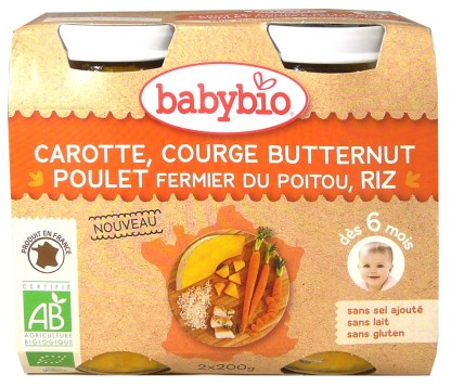 BABYBIO CAROTTE-COURGE BUTTERNUT-POULET-RIZ 2x200 G