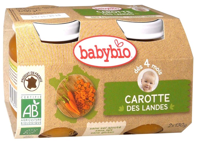 Les Petits pots Carotte des Landes de BABYBIO, un délicieux repas à donner aux tout-petits à partir de 4 mois pour commencer à diversifier leur alimentation tout en douceur.