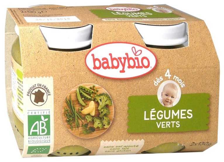 Les petits pots légumes pour bébé de BABYBIO sont de délicieuses purées bio 100% légumes cuits à la vapeur pour les bébés dès 4/6 mois à base de savoureux légumes biologiques. Dès 4 mois, la diversification alimentaire se fait tout en douceur en alternant avec les biberons de lait. Les Petits pots Légumes verts cuits à la vapeur pour préserver leur goût naturels vont faire découvrir aux bébés dès 4 mois les saveurs des haricots verts du Val de Loire, des brocolis et des petits pois d’Espagne légèrement sucrés, pour une diversification alimentaire en douceur. Cette purée de légumes adaptée ravira les papilles des bébés! Sans sel ajoutés, sans lait, sans gluten, sans épaississant