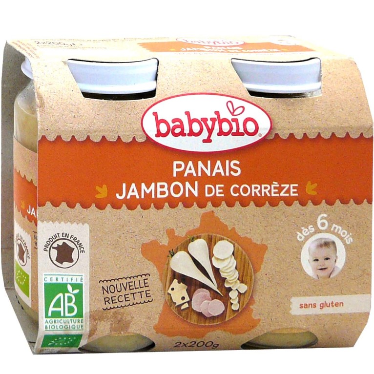 Les Petits pots Menu du Jour pour bébé de BABYBIO sont de savoureux légumes et féculents accompagnés de poissons ou de viandes 100% bio cuits à la vapeur pour les bébés dès 6 mois pour faire découvrir de nouvelles saveurs. Dès 4 mois, la diversification alimentaire se fait tout en douceur en alternant avec les biberons de lait. Les Petits pots Menu du jour Panais-Jambon bio cuits à la vapeur pour préserver leur goût naturels vont faire découvrir aux bébés dès 6 mois les saveurs du panais et des pommes de terre du Val de Loire qui sont complétées par du jambon français des Pays de Loire accompagné par du gruyère français, pour une diversification alimentaire en douceur. Ce Menu du jour en petit pot adapté ravira les papilles des bébés! Sans sel ajoutés, sans épaississant, et sans gluten. Contient du lait