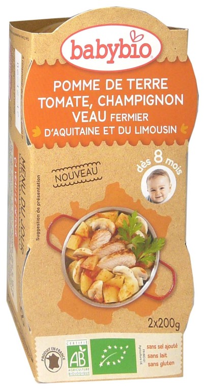 BABYBIO POMME DE TERRE-TOMATE-CHAMPIGNONS-VEAU 2x200G