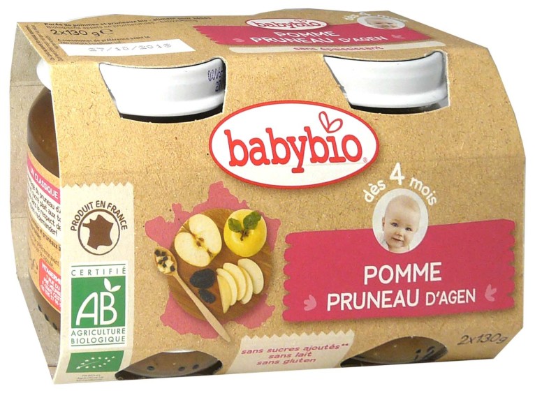 Les Petits pots Pomme-Pruneau de BABYBIO, un bon dessert ou goûter à utiliser chez les tout-petits à partir de 4 mois pour commencer à diversifier leur alimentation tout en douceur.