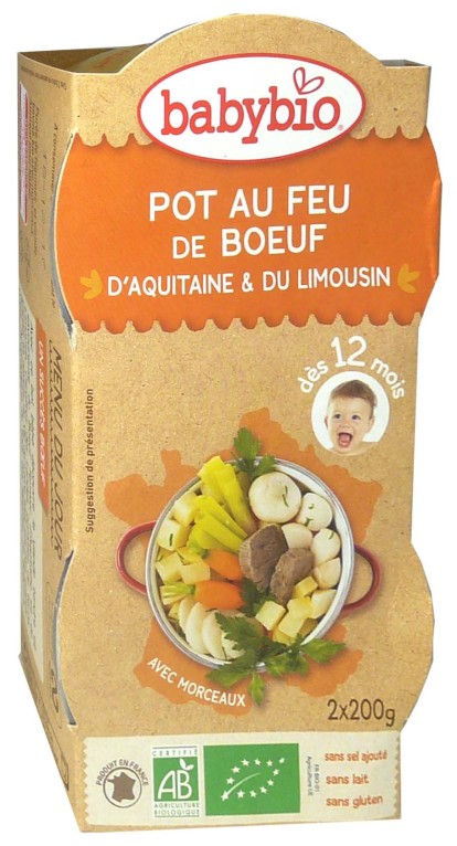 Les bols Menu du Jour pour bébé de BABYBIO sont de savoureux légumes et féculents accompagnés de poissons ou de viandes avec morceaux 100% bio cuits à la vapeur pour les bébés dès 8 mois pour faire découvrir de nouvelles saveurs. Le Bol Menu du jour va faire découvrir aux bébés dès 12 mois les saveurs des pommes de terre, des navets et poireaux du Val de Loire, des carottes des Landes qui sont complétées par du bœuf fermier élevé en Aquitaine et Limousin tendre et savoureux, sur une touche de panais pour un petit goût sucré. Ce bol menu du jour adapté ravira les papilles des bébés! Sans sel ajoutés, sans lait, sans gluten, sans épaississant