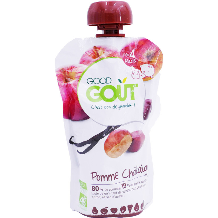 Découvrez la nouvelle marque française d’alimentation biologique sans produits chimiques ni pesticides ni OGM, à base de fruits et de légumes savoureux : GOOD GOUT. Spécialisée dans la conception de produits délicieux, GOOD GOUT vous assure qualité nutritionnelle, saveurs naturelles et plaisirs gustatifs pour régaler les enfants dès le plus jeune âge ! Lorsque vient l’âge de la diversité alimentaire, Bébé est avide de nouvelles saveurs et de textures différentes. Les Gourdes Purée de fruit Bio qui ne contiennent pas de sucres ajoutés ni autres ingrédients nocifs, régaleront les papilles des plus jeunes ! Onctueuses, elles contiennent que des fruits, un peu de vanille et une goutte de jus de citron pour une touche acidulée, qui plairont aux enfants. En gourdes, la purée Pomme Châtaigne Bio s’emporte partout avec soi pour répondre aux envies gourmandes des petits ! 99% de fruits Bio Sans sucres ajoutés