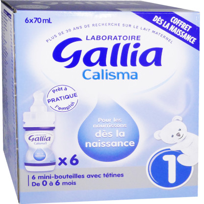 GALLIA spécialiste du lait infantile depuis 60 ans, développe en collaboration avec des spécialistes de la petite enfance (pédiatres, nutritionnistes…) une large gamme de laits infantiles se rapprochant au mieux du lait maternel, pour offrir aux bébés une alimentation adaptée à leur développement, prévenir ou traiter les petits troubles nutritionnels des nourrissons. Calisma lait 1er âge de GALLIA est spécialement formulé pour l’alimentation des nourrissons de 0 à 6 mois qui ne présentent pas de troubles particuliers, en relais ou en complément de l’allaitement maternel. Ce lait est conçu pour prolonger les bienfaits du lait maternel et apporter aux nourrissons tous les éléments essentiels à leur développement harmonieux. Il contribue au bon fonctionnement du système immunitaire et au bon développement cérébral des bébés. Pratique et prêt à l’emploi, chaque petit biberon identiques à ceux de la maternité, sont équipés d’une tétine stérile à usage unique adaptée pour les nourrissons dès la naissance.