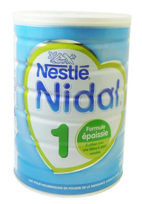 NESTLE, première entreprise mondiale dans le secteur agro-alimentaire met son expertise au service des bébés en développant une marque de nutrition infantile NIDAL, conçue pour apporter une solution de qualité à chaque besoin nutritionnel du nourrisson. NIDAL Formule épaissie 1er âge est un lait spécialement formulé pour répondre efficacement aux troubles digestifs des bébés, tout en leur apportant les éléments essentiels à la croissance. Ce lait à la consistance fluide enrichi en amidon, épaissit dans l’estomac du nourrisson et répond efficacement aux problèmes de régurgitations. Sa formule composée d’un taux de protéines faibles pour ne pas surcharger l’organisme de bébé, apporte des vitamines A, C, D, du fer et des acides gras essentiels qui participent au développement neurosensoriel de bébé.