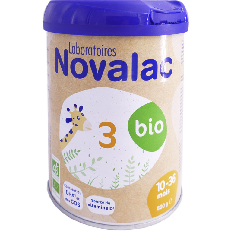 NOVALAC 3 BIO 10-36 MOIS 800G en vente en ligne, sur le site de votre parapharmacie à prix discount, est une formule infantile d'origine biologique spécialement conçue pour les nourrissons dès 10 mois.