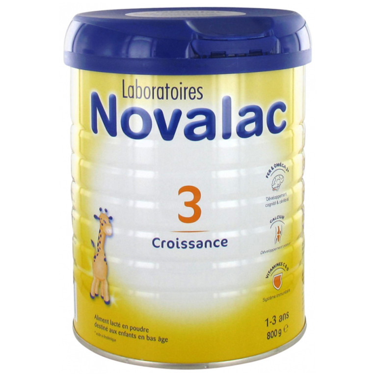 NOVALAC, marque de nutrition infantile distribuée exclusivement en pharmacie et parapharmacie, propose des laits infantiles d’un type nouveau (Nova-Lac) développés avec des pédiatres, ingénieurs et pharmaciens, afin d’accompagner de façon harmonieuse la croissance des nourrissons et apporter une solution adaptée à chacun de leur besoin. Chaque produit Novalac fait l’objet de plus de 500 contrôles stricts afin de garantir une qualité optimale et une sécurité absolue. Le lait de croissance 3ème âge de NOVALAC est spécialement conçu pour répondre aux besoins nutritionnels des jeunes enfants avant le passage au lait de vache. Ce lait apporte tous les nutriments essentiels à la croissance harmonieuse du nourrisson : protéines, fer, calcium, 13 vitamines et 11 minéraux, acides gras oméga 3 et 6 et assure une transition en douceur avec le lait de vache.