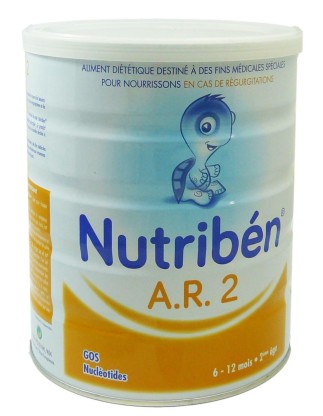 AR 2 de NUTRIBEN, le lait en poudre qui permet aux bébés de 6 à 12 mois souffrant de régurgitations de retrouver un meilleur confort lors de la prise du biberon. Nouveau format et même formule.