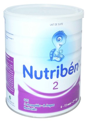 Née à Barcelone en 1963, la marque NUTRIBEN développe des produits spécialement conçus pour couvrir l’ensemble des besoins alimentaires du nourrisson : petits pots, farines et laits infantiles. Désormais implanté en France depuis 2006, NUTRIBEN œuvre au quotidien pour offrir des produits alimentaires sûrs, efficaces et rigoureusement contrôlés, qui accompagneront harmonieusement la croissance des bébés. NUTRIBEN propose sa gamme de laits infantiles, élaborés avec les meilleures matières premières disponibles, formulés pour se rapprocher les plus près possible de la composition du lait maternel, offrant un large choix de laits adaptés aux besoins nutritionnels des bébés. Le Lait en poudre NUTRIBEN 2 est spécialement formulé pour renforcer les défenses naturelles de bébé, en relais de l’allaitement maternel. La composition équilibrée de Nutriben1 à base de prébiotiques et probiotiques, enrichie en omégas 3 et 6, vitamines et oligo-éléments facilite la digestion des bébés et contribue à leur apporter tous les nutriments essentiels à une croissance harmonieuse.