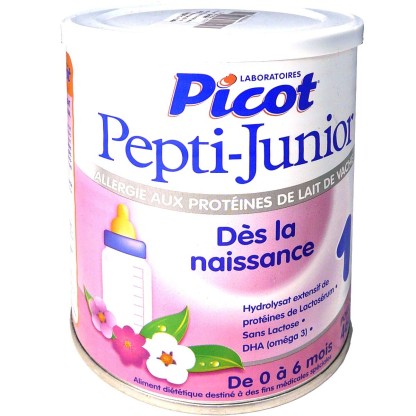 Le laboratoire PICOT conçoit des produits nutritionnels pour les tout-petits (laits, céréales…) pour un développement harmonieux. Le lait Pepti Junior 1 de PICOT diminue le risque d’allergie et participe à la bonne absorption intestinale grâce à sa formule composée de protéines de lactosérum hydrolysées, de peptides à chaîne courte, dextrine-maltose, et de triglycérides à chaîne moyenne. Il participe également au bon développement de bébé en apportant tous les nutriments nécessaires (vitamines, minéraux pour une bonne croissance. Le lait peut également être utilisé lors de réalimentation des diarrhées aiguës, prolongées ou chroniques, malnutrition protéino-énergétique, malabsorption, mal digestion des graisses, chirurgie digestive.