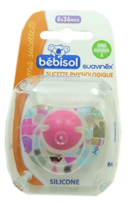 Le laboratoire BEBISOL a conçu des produits de puériculture pour tous les âges de bébés de la sucette au repas ou à la toilette pour un développement harmonieux et pour le plaisir des mamans. Sa téterelle est douce comme le sein de la maman et apaise le bébé lors de la succion. Asymétrique elle est adaptée à la forme du palais et à la dentition grâce à son côté bombé qui prend la forme du palais et son côté plat qui aide à une déglutition sans difficulté en positionnant bien la langue. Par son bouclier qui a des trous pour laisser passer l'air, le tour de la bouche n'est pas irritée. La sucette est facile à enlever et à mettre dans la bouche grâce à son anneau qui peut aussi s’utiliser avec un accroche-sucette.