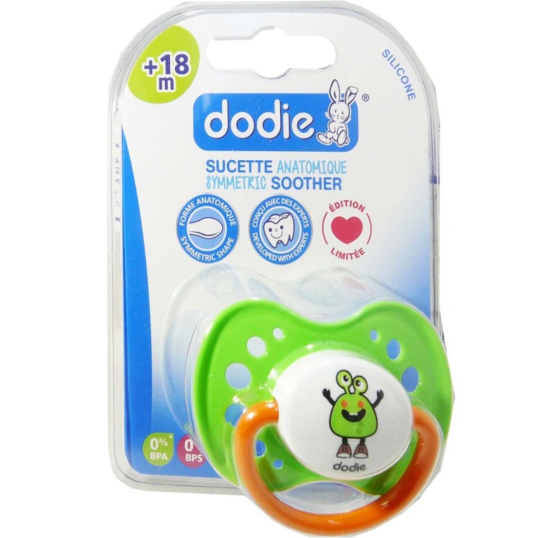 Sucette anatomique silicone +18 mois A60 de DODIE discount, la sucette qui apaise et rassure les bébés de + de 18 mois dans votre parapharmacie à prix discount, tout en respectant le développement de la bouche. « Fluo » Coloris et Motifs selon disponibilité