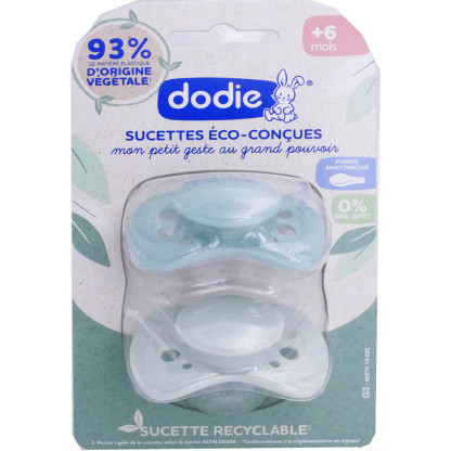 Dodie sucettes eco concues lot de 2 dès 6 mois pas chères dans votre parapharmacie en ligne.Les sucettes qui respectent la planette de Bébé.