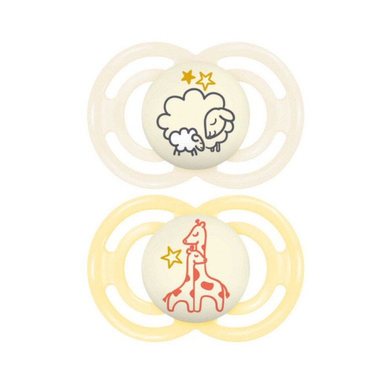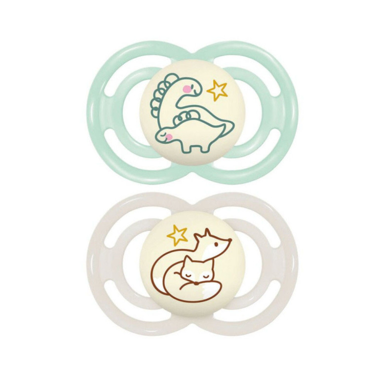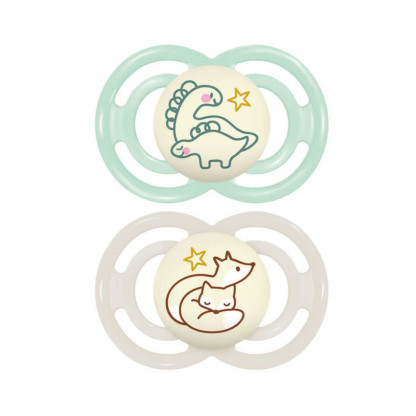 MAM PERFECT 2 SUCETTES SILICONE 6 MOIS+ ANIMAUX NUIT REF 72