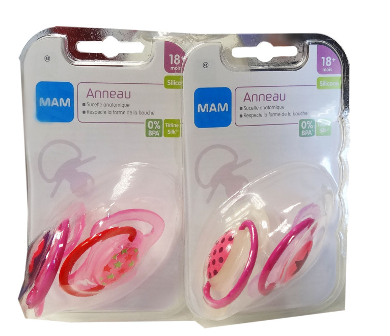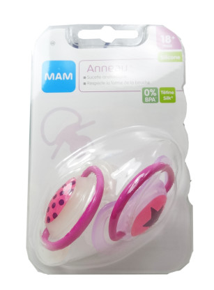 MAM SUCETTE SILICONE +18 MOIS ANNEAU FILLE LOT DE 2