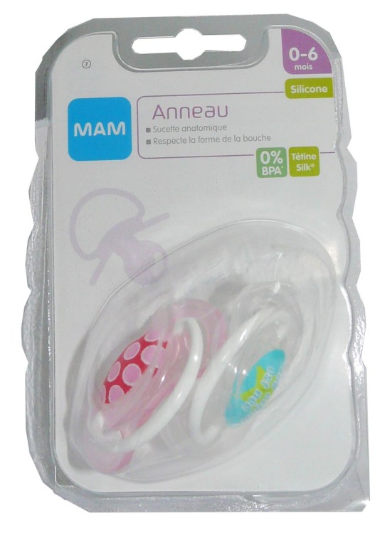 MAM développe depuis 35 ans des produits de puériculture uniques, tant par leur design que par leur fonctionnalité, afin de favoriser le développement des jeunes enfants et répondre aux exigences de leur parents. Chaque produit est conçu en partenariat avec des professionnels du monde médical, pédiatrique et scientifique : médecins, sages-femmes, psychologues du développement, designers et experts en technologie, afin que tous les bébés démarrent la vie du bon pied. Les sucettes MAM accompagnent les bébés en satisfaisant leur réflexe de succion et en leur procurant un sentiment d’apaisement. Les sucettes MAM sont conçues pour garantir un maximum de confort aux bébés pendant les différentes phases de leur développement. Leur design anatomique assure une parfaite prise en bouche et le respect du développement de la mâchoire. Les tétines en silicone souple sont extra-douces et offre une bonne stabilité en bouche. La sucette MAM 0-6 mois anatomique avec anneau, préserve la peau fragile des bébés et sa collerette évasée n’entrave pas la respiration.