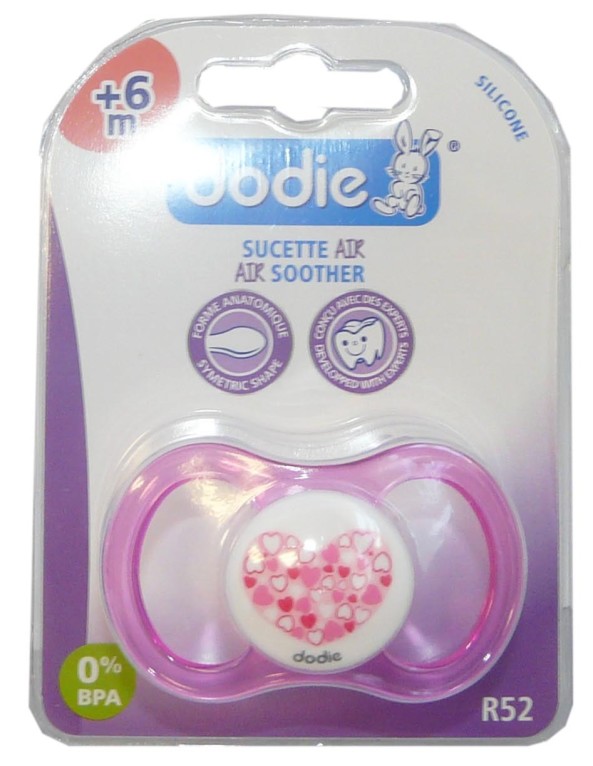 Sucette Air anatomique silicone R52 de DODIE discount, la sucette qui apaise et rassure les bébés dès 6 mois dans votre parapharmacie en ligne à prix discount, tout en respectant la peau et le développement de la bouche.