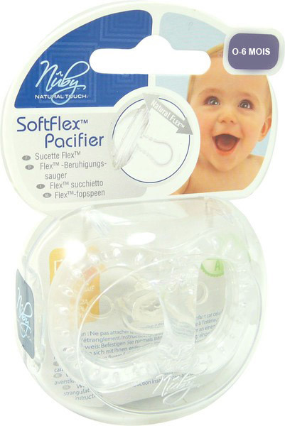 NUBY présent dans 155 pays du monde, développe des produits de puériculture : alimentation et bien-être du nourrisson, en collaboration avec des professionnels de tous pays pour offrir le meilleur, le plus fiable aux bébés et faciliter la vie des jeunes parents. Les sucettes NUBY répondent de la meilleure façon possible aux besoins naturels de succion des bébés. La sucette Natural Touch SoftFlex de NUBY est dotée d’un embout flexible en silicone doux qui s’allonge et se rétracte comme le sein maternel favorisant ainsi le réflexe de succion. La tétine est composée de petits picots qui soulagent et stimulent les gencives du nourrisson, et laissent passer l’air entre la peau et la sucette pour réduire les risques d’irritation.