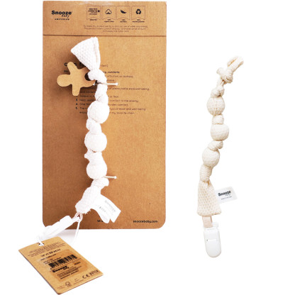 La marque hollandaise SNOOZE BABY offrent aux bébés les meilleurs produits de puériculture pour leur confort (couverture, attache tétine, jeux d’éveil,…) aux couleurs et matières douces et différentes afin de réconforter bébé et l’éveiller.Les attache-tétine SNOOZE BABY se pincent directement sur les vêtements de bébé, doudou, lange… pour résoudre définitivement les problèmes de sucettes qui tombent ou qui se perdent. L’attache très pratique s’adapte aux sucettes avec anneau. Son cordon 100% coton certifié Oeko Tex tout doux est solide et sûr. Pratique l’attache sucette se lave en machine à 30°C.