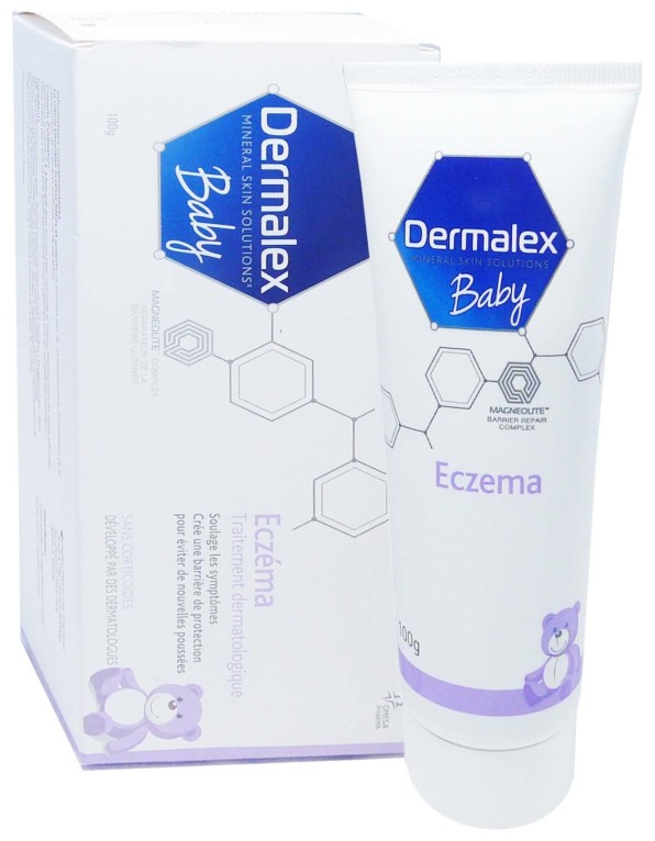 Les produits DERMALEX sont composés de soins pour traiter et soulager les peaux souffrant de sècheresse, d’eczéma et de psoriasis. La crème Eczéma Traitement dermatologique Baby répare en reformant le film protecteur de l’épiderme et les céramides naturels qui manquent, protège de nouvelles poussées d’eczéma, diminue les symptomes de la peau sèche, hydrate et apaise instantanément et pour longtemps de tout inconforts (démangeaisons, rougeurs, irritations). Sa texture pénètre vite à l’application pour laisser la peau confortable et douce dès l’application Efficacité prouvée cliniquement par des dermatologues. Sans corticostéroïdes, sans inhibiteurs de la calcineurine, sans colorants artificiels ou sans parabens.