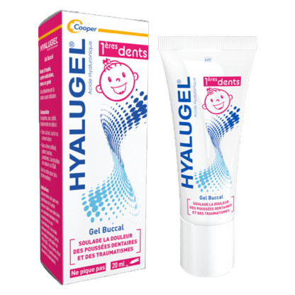 La marque HYALUGEL des laboratoires Expanscience conçoit des produits d’hygiène bucco-dentaires à base d’acide hyaluronique pour soulager les problèmes comme les aphtes, inflammations, irritations… Le gel buccal 1ères dents HYALUGEL est un dispositif médical qui calme les douleurs liées aux poussées dentaires et apaise l’enfant tout en favorisant la cicatrisation des gonflements grâce à une matrice polymérique autoadhésive novatrice brevetée. Le gel va former un film invisible résistant et souple sur les dents et les gencives par l’effet du massage sur les gencives instantanément et pour longtemps.