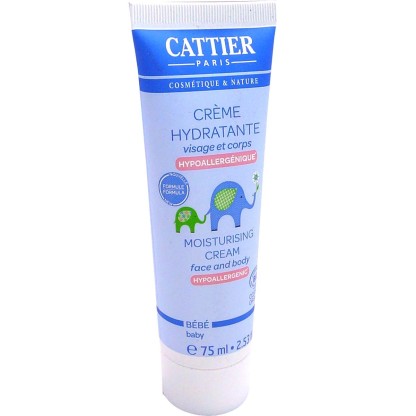 La Crème hydratante bio de CATTIER discount, le soin douceur destiné à la peau fragile de bébé dans votre parapharmacie à prix discount, pour hydrater et protéger du dessèchement la peau délicate de bébé, corps et visage.