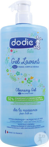 Depuis 1958, DODIE innove dans des produits performants de petite puériculture. N°1 en France, la marque est la référence en matériel de petite puériculture en étant attentif aux besoins des mamans et de leurs bébés afin d’offrir des produits toujours plus pratiques, simples et sûres qui suivent l’évolution des bébés. Gel Lavant 3 en 1, est un gel lavant visage, corps et cheveux sans savon composée de 92% d’ingrédients d’origine naturelle associant de l’Extrait d’Aloe vera, de l’extrait de coton et d’hamamélis Bio spécialement conçu pour les peaux sensibles des bébés dès la naissance. Sa base lavante moussante, extra-douce qui ne pique pas les yeux combinée à une texture gel facile à rincer va permettre un nettoyage en douceur...et va laisser place à une peau de bébé propre, douce, apaisée, hydratée et délicatement parfumée. Fabriqué en France et testé sous contrôle dermatologique et ophtalmologique.