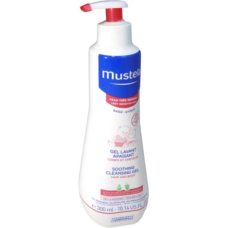 Gel lavant apaisant de MUSTELA discount, le gel très doux dans votre parapharmacie à prix discount, pour nettoyer tout en douceur la peau très sensible et les cheveux de bébé dès la naissance et des jeunes enfants.