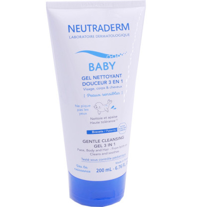 NEUTRADERM BABY Gel Nettoyant discount des laboratoires GILBERT, L’expertise au meilleur prix dans un soin haute-tolérance dans votre parapharmacie en ligne à prix discount, pour nettoyer en douceur les peaux sensibles du visage, du corps et des cheveux de bébé dès la naissance.