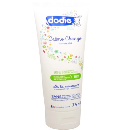 Les produits DODIE offrent aux bébés les meilleurs produits pour leur nutrition et leur confort et des produits aux mamans pour leur confort d'allaitement, de conservation et de stérilisation. Adaptée pour les peaux très sensibles des bébés dès la naissance, la Crème pour le change à base d’ingrédients d’origine naturelle et biologiques nourrit, protège, et apaise la peau du siège. Composée d’eau d’hamamélis, et d’extraits d’aloe vera et coton, et d’oxyde de zinc, elle va protéger la peau fragile en prenant soin du film protecteur en la régénérant, soulager des irritations et rougeurs qui peuvent être causées par les couches, les selles et l’urine en luttant contre leur réapparition, et apaiser des irritations et rougeurs. Sa texture épaisse et onctueuse laissera la peau douce et confortable. Après le soin, la peau de bébé est apaisée et protégée d’apparition de rougeurs et irritations. Sans parfum testée sous contrôle dermatologique. Hypoallergénique