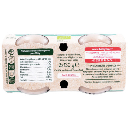 Dès 4 mois, la diversification alimentaire se fait tout en douceur en alternant avec les biberons de lait. Les desserts végétaux de BABYBIO sont de délicieux desserts ou gouters pour les bébés dès 6 mois à base d’avoine ou de coco avec de savoureux fruits biologiques sans ajout de sucres.