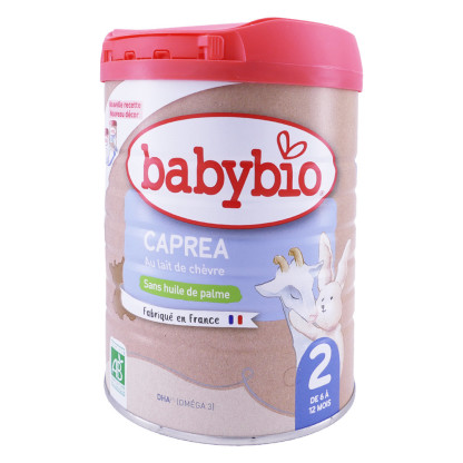 BABYBIO est une marque spécialisée dans l'alimentation bio pour bébé. La gamme Capréa est composée de produits à base de lait de chèvre bio élevées en France et sans huile de Palme. Le lait de chèvre est plus digeste que le lait de vache et est donc plus adapté aux bébés à partir de 6 mois. La préparation BABYBIO Capréa au Lait de Chèvre 2ème âge Bio 800g est composée, de lait de chèvre, de DHA qui est un acide gras poly-insaturé (de la famille des oméga 3) , de minéraux, et d’huiles végétales bio. Il convient uniquement aux nourrissons âgés d'au moins 6 mois et doit être intégré à une alimentation diversifiée. L'introduction d'aliments complémentaires, y compris avant l'âge de 6 mois, ne doit se faire qu'avec l'avis d'un professionnel de santé. Il est important de noter que le lait de suite ne peut pas être utilisé comme substitut du lait maternel pendant les 6 premiers mois de la vie.