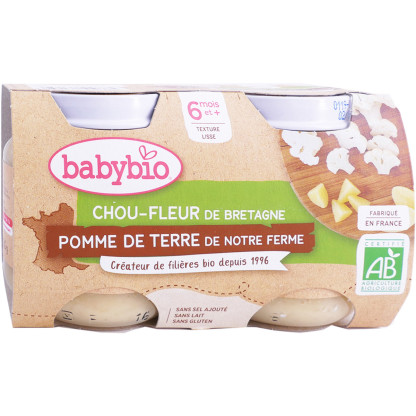 BABYBIO PETITS POTS BIO CHOU FLEUR POMME DE TERRE 6 MOIS+ 2X130G