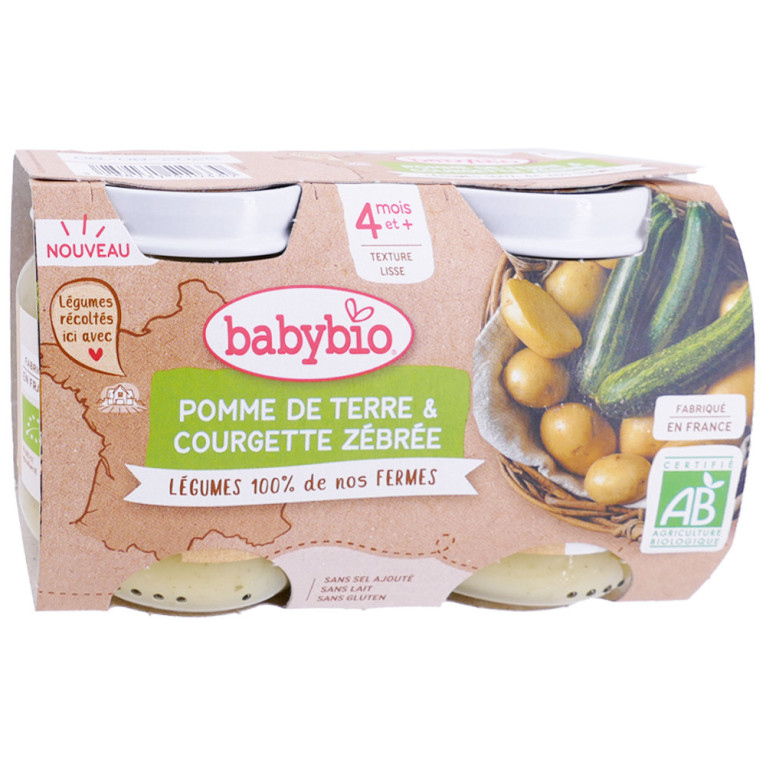 BABYBIO PETITS POTS POMME DE TERRE COURGETTE 4M+ 2X130G