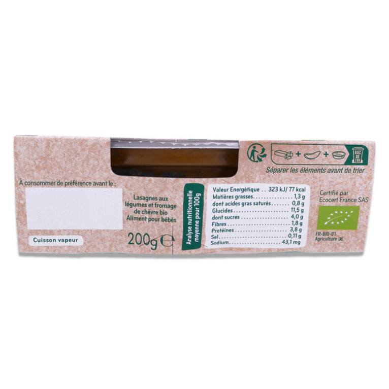 Lasagnes aux légumes et fromage de chèvre bio - Aliment pour bébé