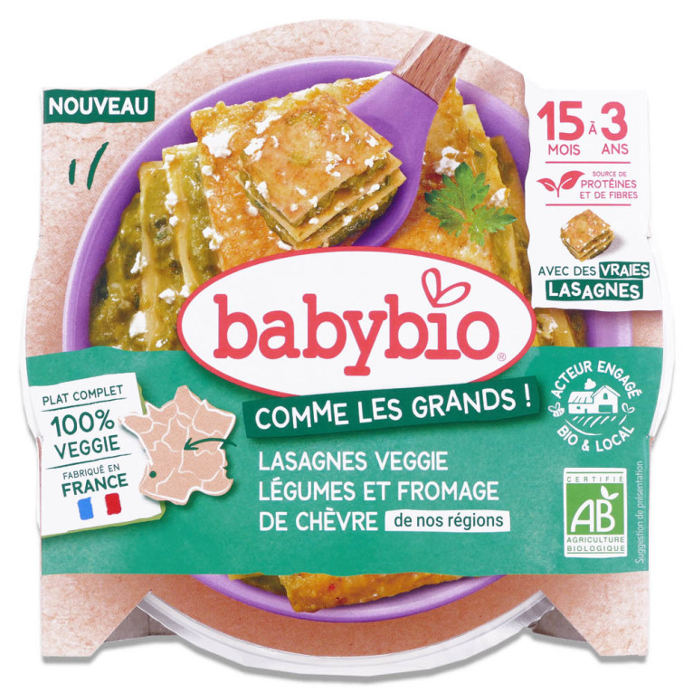 BABYBIO LASAGNES VEGGIE LEGUMES FROMAGE DE CHEVRE DE NOS REGIONS 200G est en vente en ligne sur le site de votre parapharmacie à prix discount, un plat cuisiné pour les enfants de 15 mois à 3 ans.