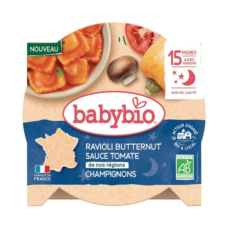 BABYBIO PLAT COMPLET RAVIOLI BUTTERNUT 15MOIS+ 190G : Découvrez un repas savoureux et équilibré pour votre petit bout, en vente en ligne sur le site de votre parapharmacie à prix discount.