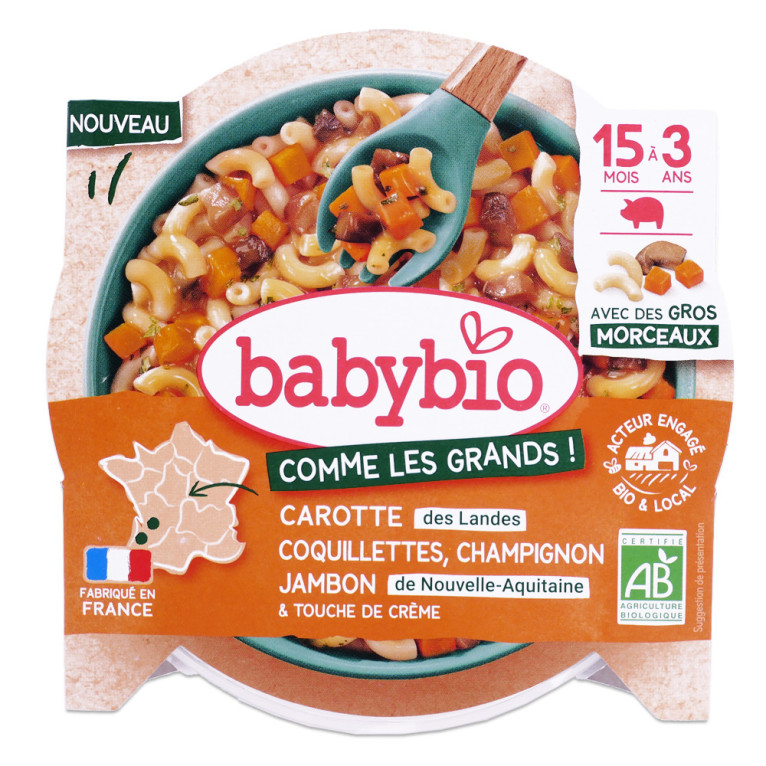 BABYBIO PLAT PRÉPARÉ CAROTTE COQUILLETTES CHAMPIGNON JAMBON