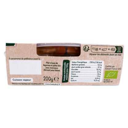 Plat à base de légumes et pâtes bio avec morceaux - Aliment pour bébés
